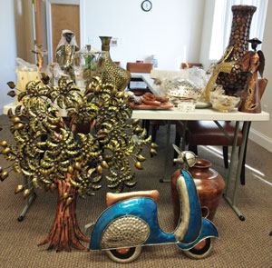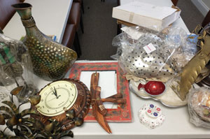 Ebenezer has received a donation of boxes and boxes and boxes of craft items from India. Find a truly unique gift or decorative item for your home and enjoy homemade soup and sandwiches on Saturday, December 14 from 9-1:00 p.m. Items for sale include small, large, and whimsically unique vases, candle holders, pottery, jewlery boxes, figurines, picture frames, lamps, clocks, and large and small wall decorations made of metal, wood, and pottery/glass. Below is a picture of some of the items that will be on sale at this event.
